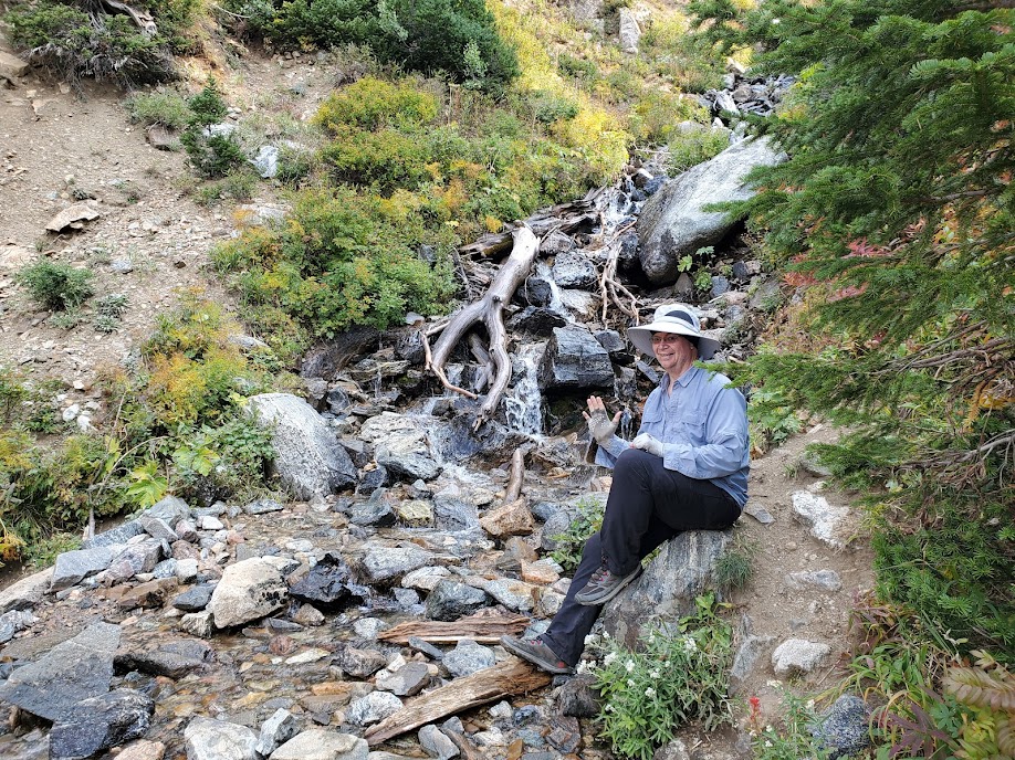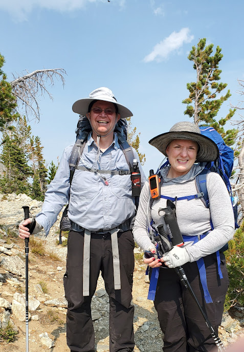 Most of the “kids” we met backpacking the Grand Tetons were younger than our own children! They trotted and galloped past us, as we shook our heads in part admiration, part exasperation. But, we also met several inspiring older adults. There were two encounters this day. First, we met Brian on our way up to Static Peak. He passed us early on, chugging away cheerfully, leaving us in the dust! As we neared the top several hours later he was headed back down, so we stopped to chat. Brian has been coming to GTNP every summer to hike since he was a teenager. When he retired last year he and his wife bought a RV, and now they have been working all summer for the Park service here. He was climbing Static Peak on this particular day to celebrate his 61st Birthday!